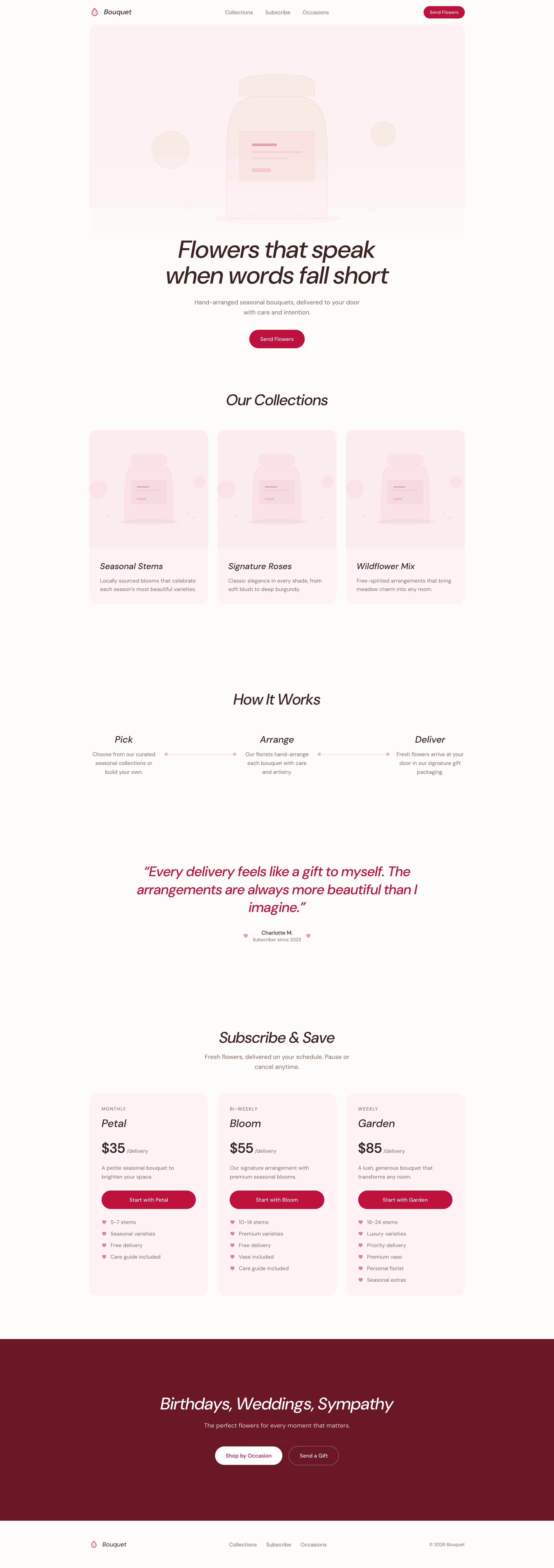 Romantic floral delivery theme with editorial elegance and warm rose accents.